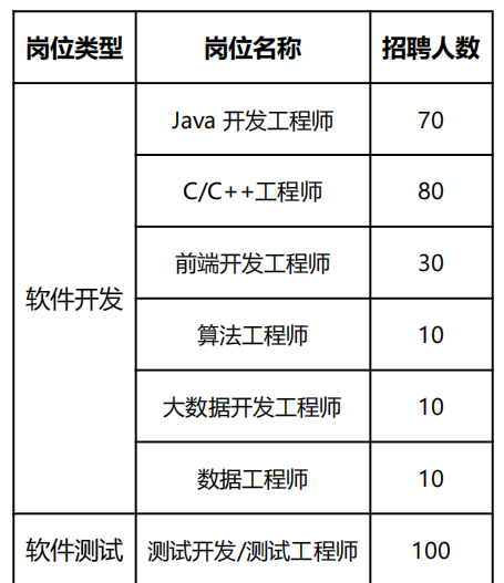 招聘职位(具体以官网发布岗位为准)
