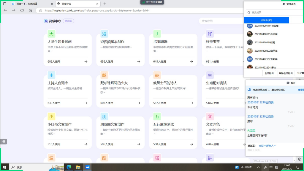 本网消息(图/文 代诗敏 李天忆)为了让同学们更好的探索职业方向、了解职业发展途径,职业云联职业生涯工作室于2023年6月13日下午14点30分在腾讯会议开展了线上主题讲座活动。本次主讲人是来自工作室的高级职业生涯设计师向星星老师。此次活动的主题是“AI与职业规划”。共计全校的50余人参与。