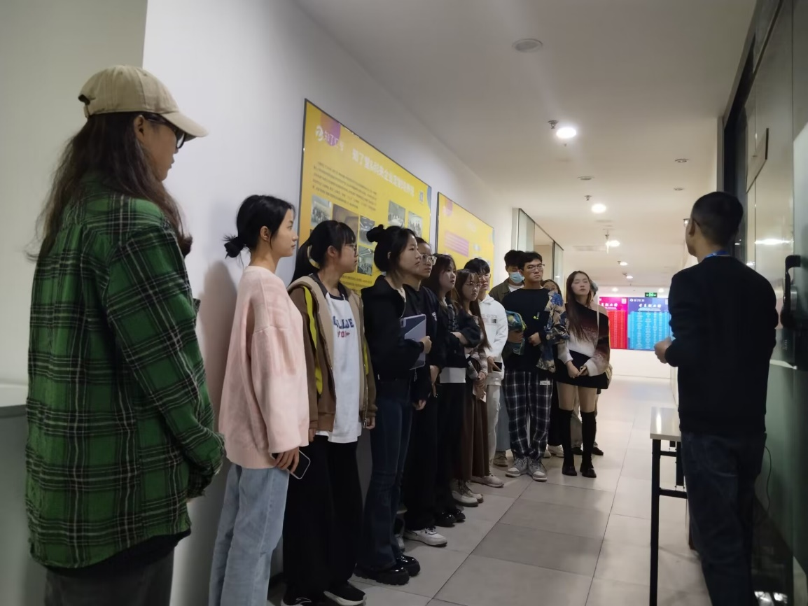 下午两点左右,学生们分为两组,有序走进公司进行参观。该公司人事杨老师向学生们介绍了公司建成、公司与品牌对接情况、发展主要目标、硬件设施、办公室情况以及所得奖项。随后,项目经理分享该公司直播数据和ip(新媒体)项目、以及产教融合等。活动期间,学生们积极向杨老师和项目经理提出问题,相互探讨就业困惑,并得到了相关问题的反馈。