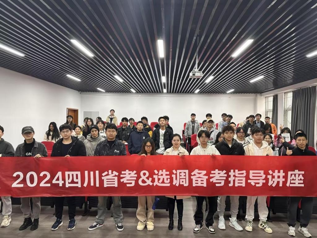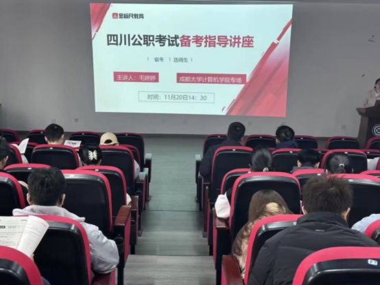 于11月20日下午在10501会议室开展了公务员培训讲座。此次培训邀请到金标尺教育四川公考笔试项目负责人毛婷婷,全校80余位学生参加。