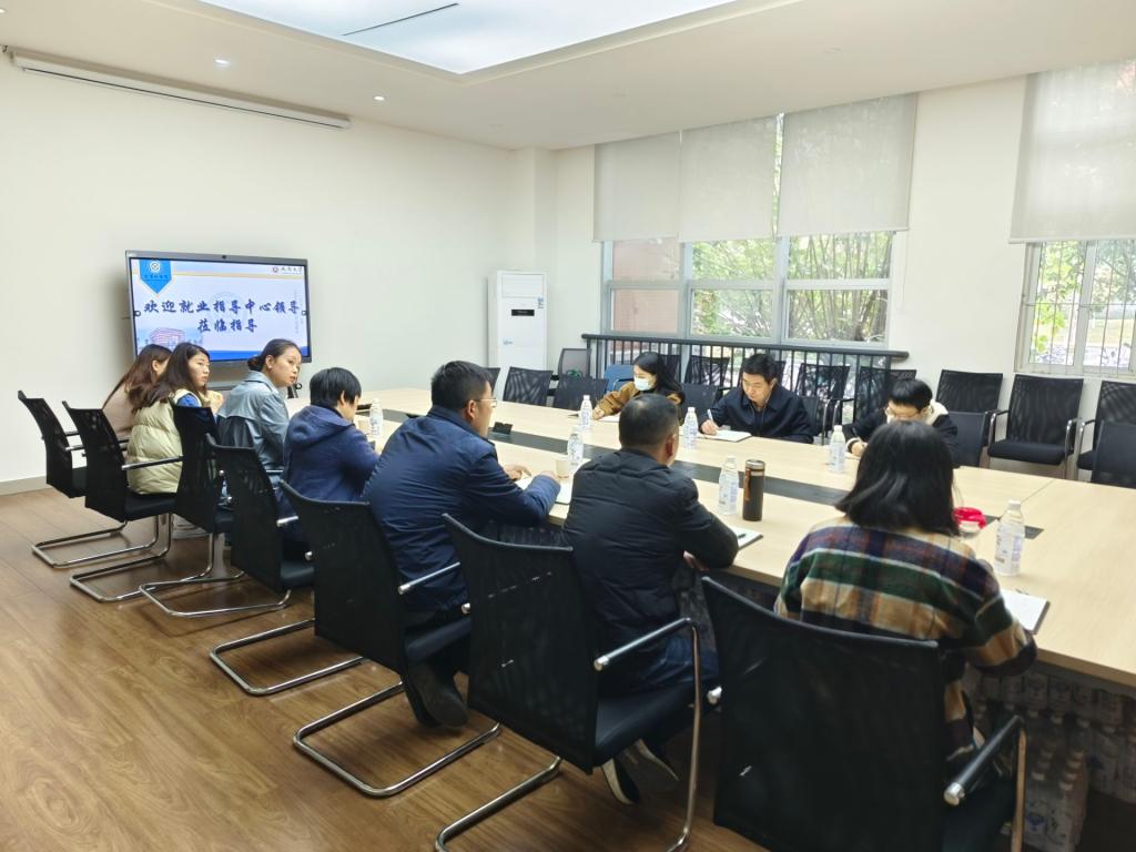 11月20日下午,党委学生工作部就业指导中心副处长涂静、马克思主义学院党总支书记安鸿、党委学生工作部叶未婷等一行莅临计算机学院调研学生就业工作。学院党委书记肖小琼,副院长王进、刘昶,党委副书记孟源、辅导员等参与座谈。