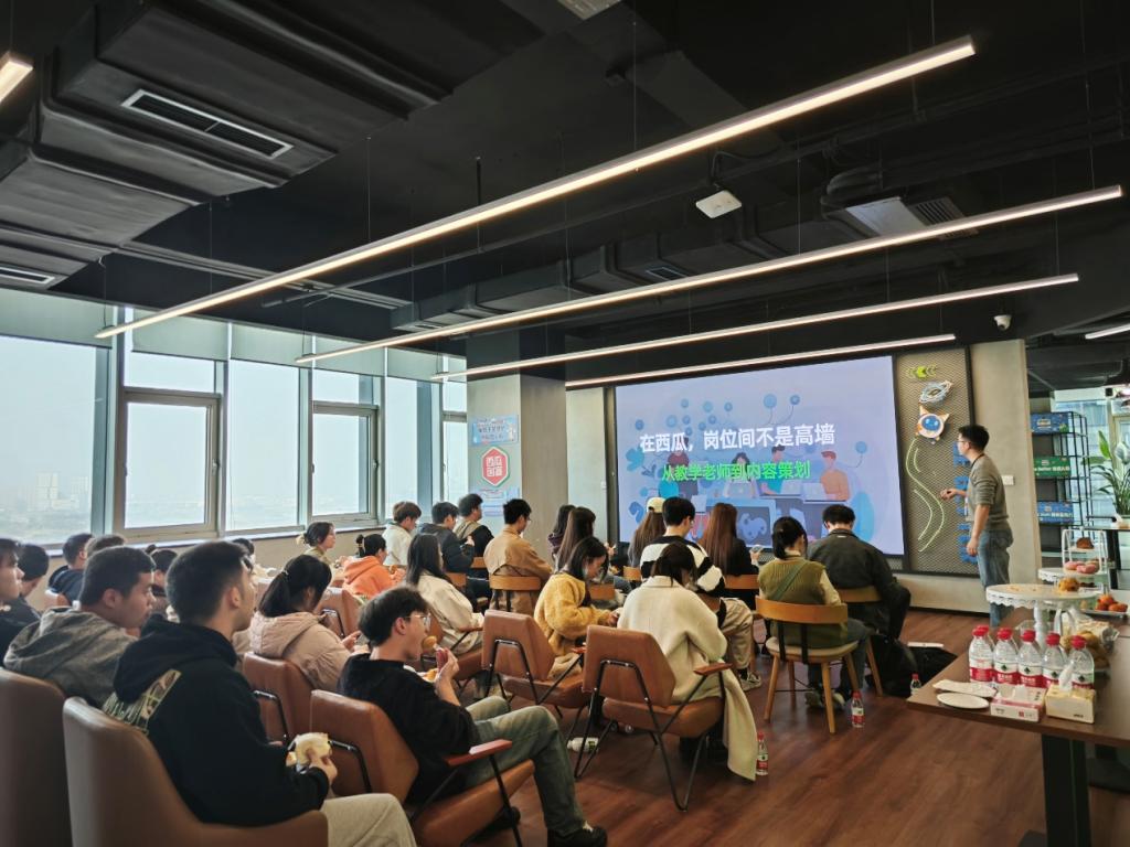 西瓜创客是位于成都市高新区AI创新中心的一家编程在线教育公司,作为编程在线教育行业的开拓者和领航者,有着开放的做爱视频,良好的工作氛围。下午两点,学生们到达西瓜创客公司,公司对来访师生表示热烈欢迎。随后,由公司HR带队对企业环境与设施进行参观,让学生们大致了解了“西瓜创客“的发展历程、整体概况、做爱视频。随后,现就职于西瓜创客公司的做爱视频