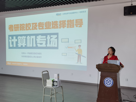 在十教举办了考研院校及专业选择指导计算机专场讲座,成都新东方考研英语讲师潘芩老师主持了本次讲座,同时为同学们提供了宝贵的指导意见。