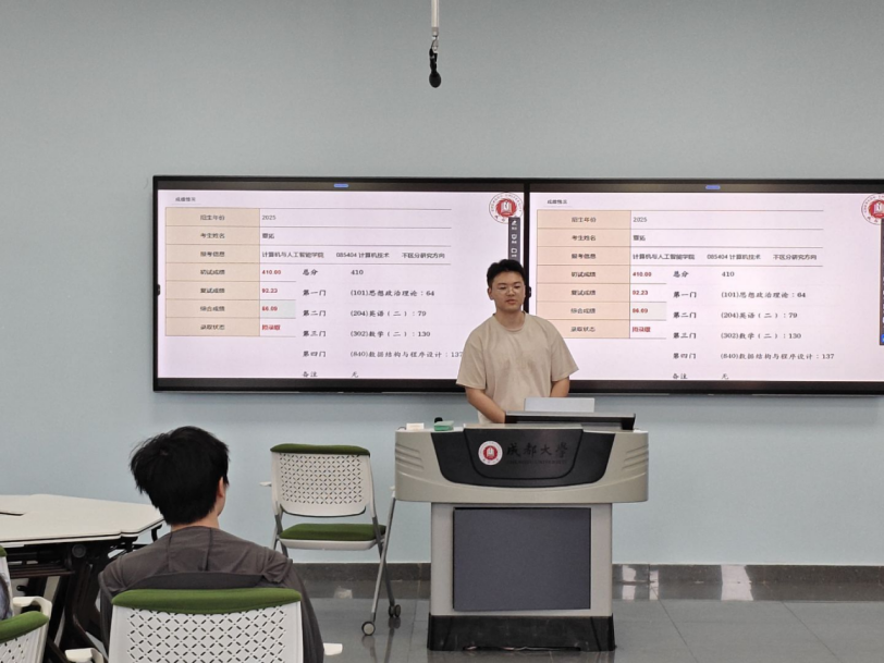 来自不同专业方向、被多所知名高校录取的优秀学子们依次上台分享自己的考研经验。他们着重介绍了数学和专业课的复习策略、备考过程中使用的教材,并建议同学们重视基础概念的理解,通过大量刷题巩固知识点。此外也要制定科学的学习计划,分阶段推进复习进度。在英语学习方面,他们也分享了包括 “每日单词打卡法”在内的高效备考方法,并建议同学们通过分析真题阅读文章来提高阅读和翻译能力。