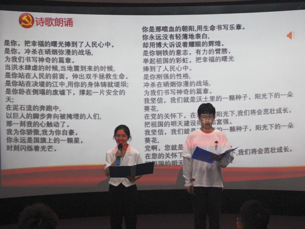 班会伊始,通过观看视频《建党百年》,回顾了中国共产党发展的光荣历程。一百年来,中国共产党始终以坚定的信念、顽强的意志,在中国革命、建设、改革的伟大实践中坚持探索初心和使命。同学们深刻认识到今天幸福生活的来之不易,也深刻理解到中国共产党成为中国革命的领导者是历史的选择。随后,周珂永和杨万英同学以《歌颂党》为题进行了诗歌朗诵,抒发了同学们热爱党、热爱祖国的真情实感,也充分展现了做爱视频