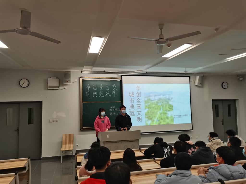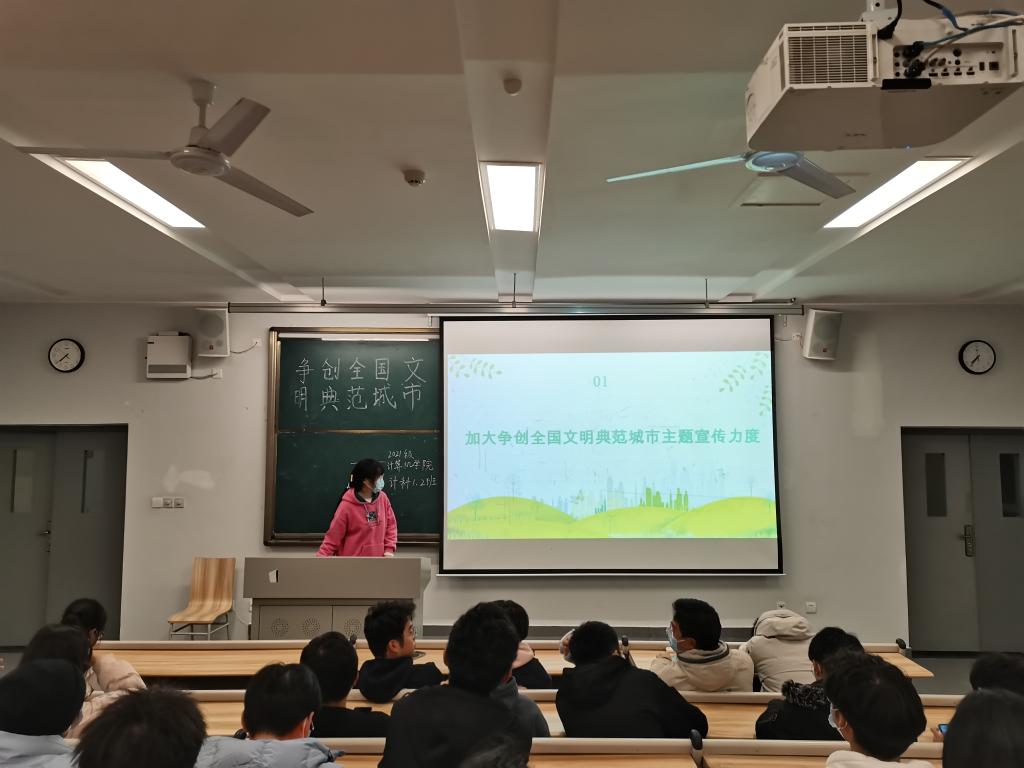 2021级计算机科学与技术专业1、2班在综合楼A124教室召开“争创全国文明典范城市”主题班会。本次班会由刘兴蕊、曹俊主持。