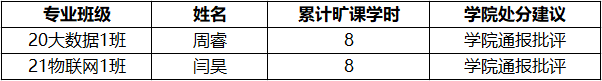 根据《做爱视频 学生考勤管理制度》的相关规定,为端正学风、严肃校纪校规,现对以下严重缺勤学生给予全院通报批评。
