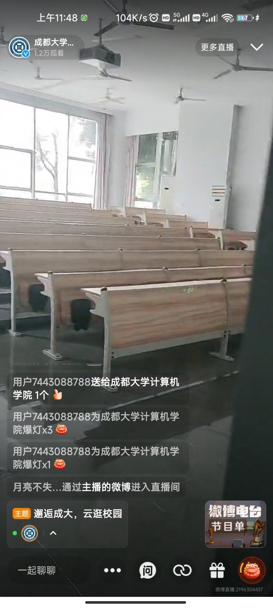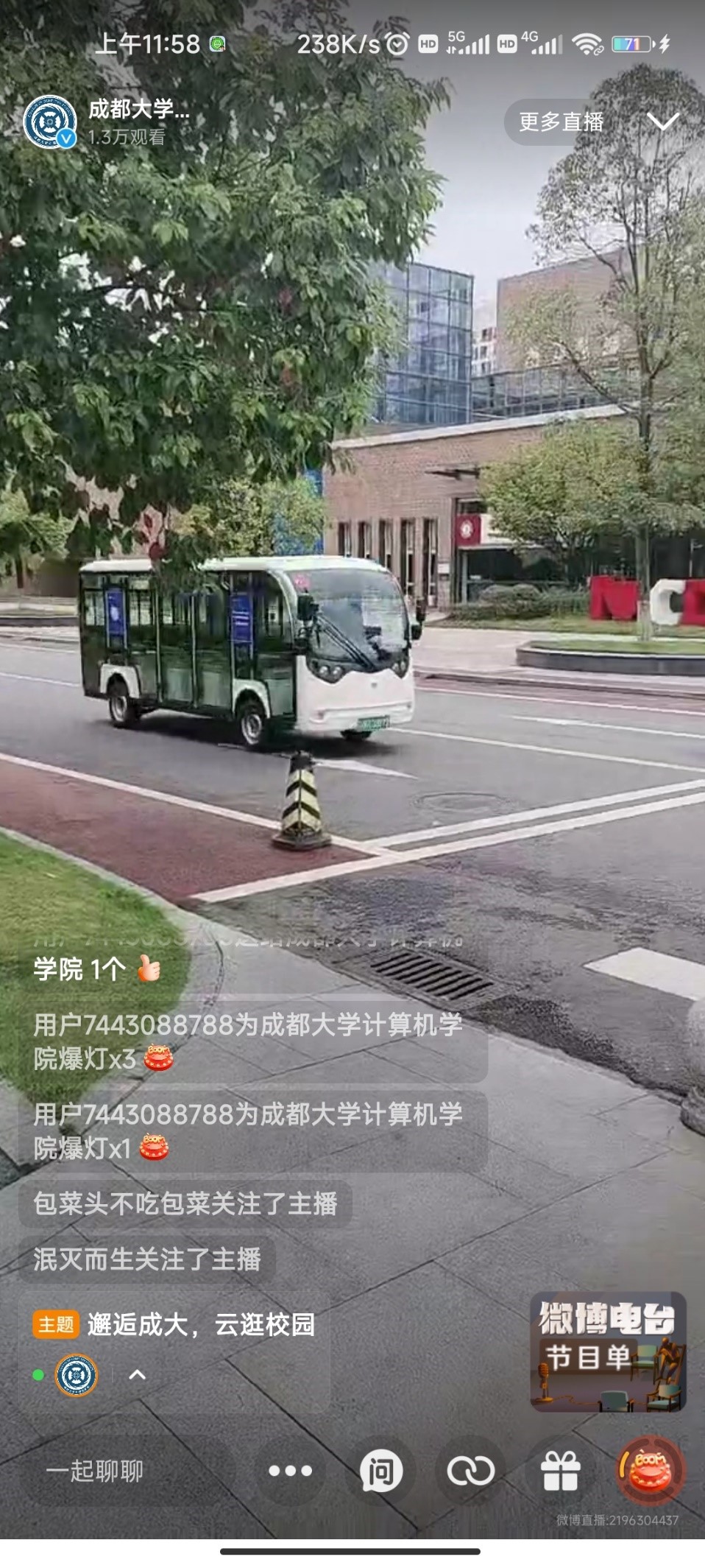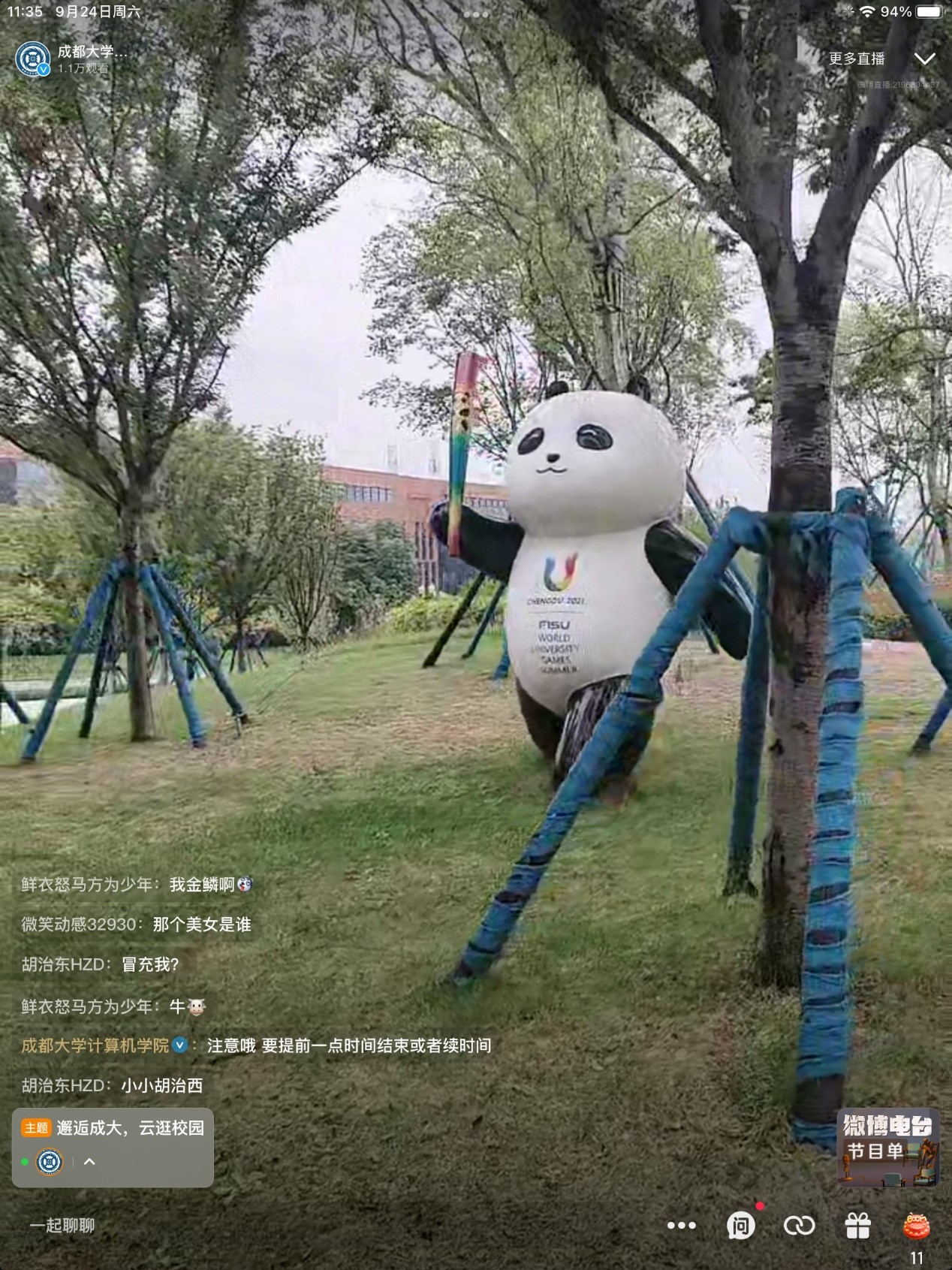官方微博开展“邂逅成大,云逛校园”微博直播。本次直播由朱奥航和林子晴两位同学进行直播。
