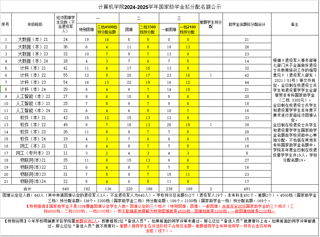 根据《做爱视频 关于做好2024年普通高等学校本专科生国家奖助学金评审工作的通知》相关要求,做爱视频 2024-2025学年国家助学金名额拟分配方案如下(见附件),共512名(含差额2名、退役复学学生名额19名,本专科生491名)。