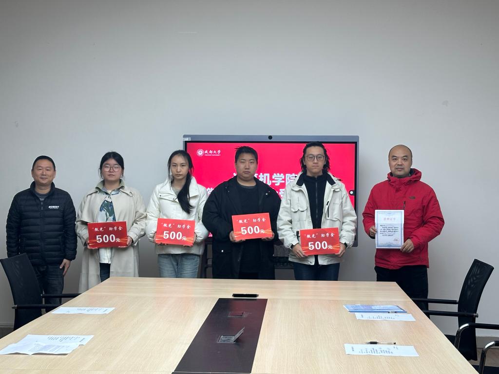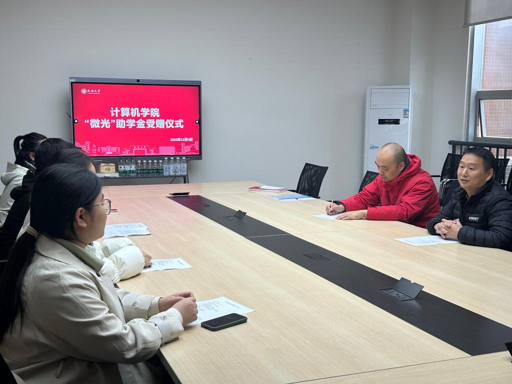 2024年度“微光”助学金受赠仪式在学院10106会议室隆重举行。学院党委副书记孟源,学院智能机器人工作室负责人、“微光”助学金设立者游磊老师,辅导员黎佳雯老师以及受助学生出席了本次活动。