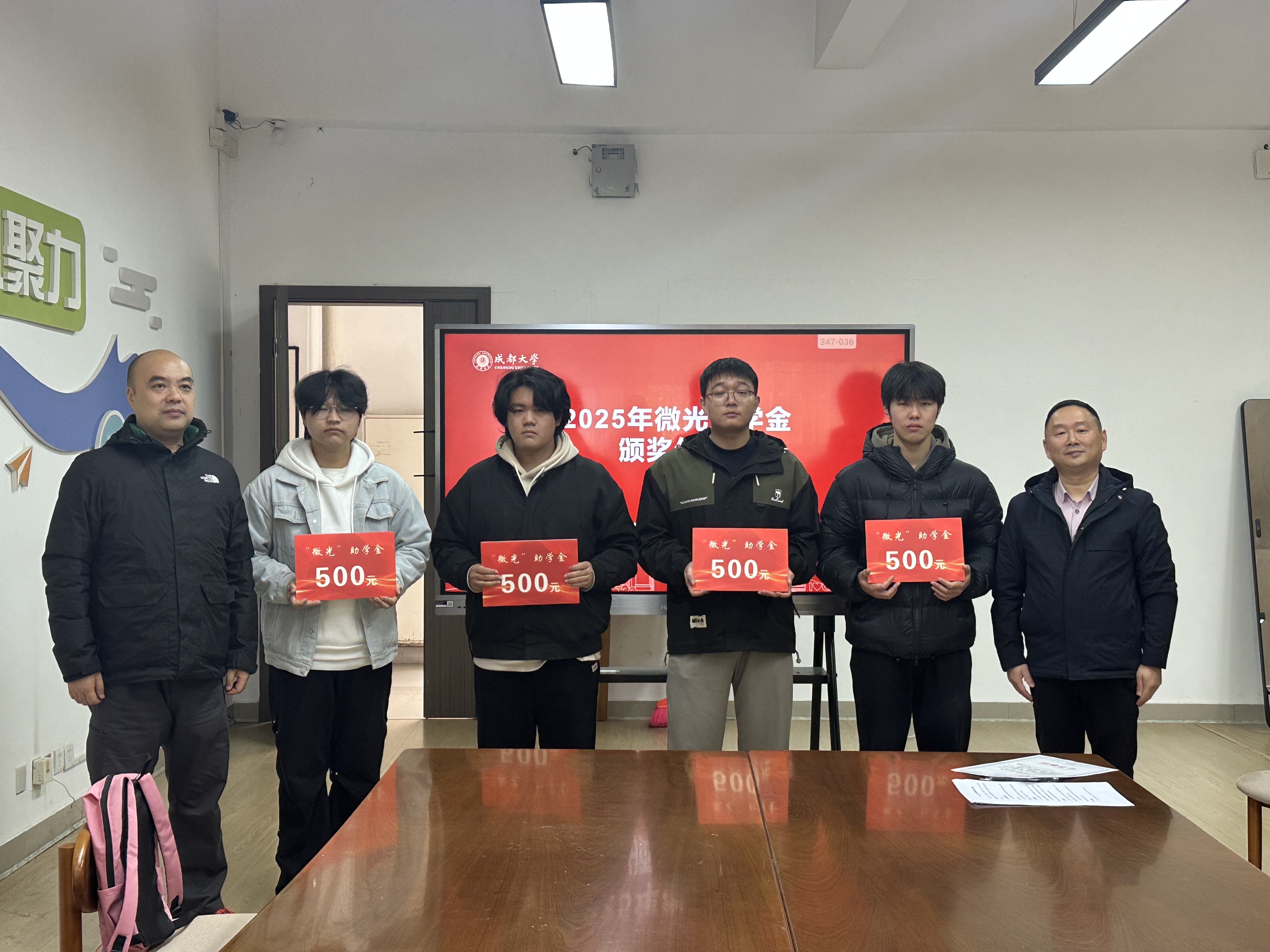 典礼最后,孟源副书记、游磊老师与4位获奖同学移步台前合影留念,将这份温暖与荣耀定格。获奖同学纷纷表示,将牢记嘱托、不负厚爱,在未来的学习和生活中刻苦钻研、积极向上,努力成为有理想、有本领、有担当的青年,用实际行动传递这份“微光”力量。