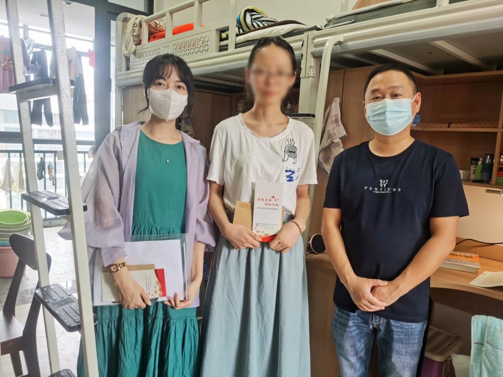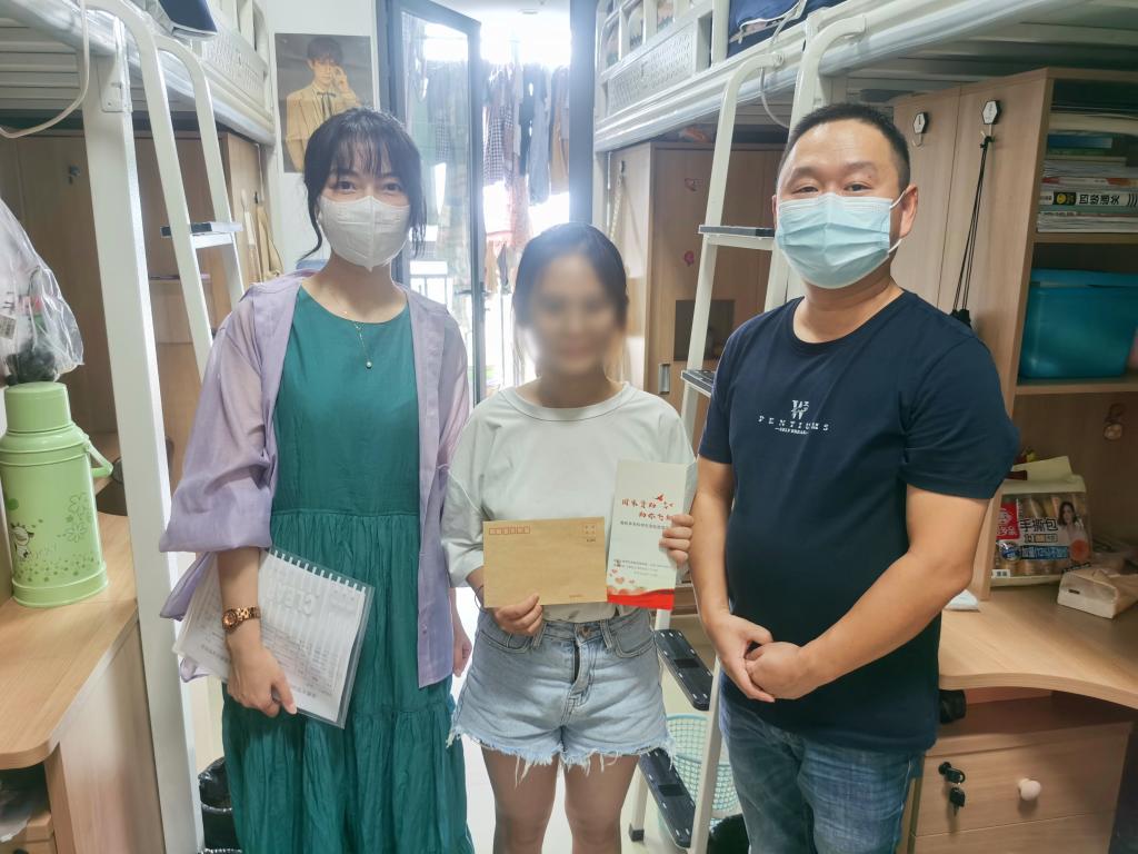 走访过程中,老师们深入家庭经济困难学生宿舍里,通过面对面聊天拉家常,与暑期留校家庭经济困难学生进行了深入的交流。一是谈家庭。全面了解家长工作生活情况、家庭经济收入,摸清学生致贫原因,明确面临的主要困难;二是聊理想。深入了解学生在校学习生活情况,结合专业就业前景,帮助找准人生目标,做好大学规划,鼓励学生要努力学习,通过自力更生改变个人命运;三是作宣讲。详细讲解当前各级针对家庭经济困难学生的帮扶政策,帮助树立信心,养成健康良好的心态,在党和国家的帮助下战胜暂时困难。四是送温暖。走访中,老师们还送去了学校的专项慰问金,让困难学生真切感受到学校大家庭的关爱和温暖。