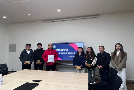 2023年度“微光”助学金受赠仪式在学院10106会议室举行。学院党委副书记孟源,学院智能机器人工作室、“微光”助学金设立者游磊老师,学工办主任龚硕老师以及辅导员黎佳雯老师出席并参与了活动。