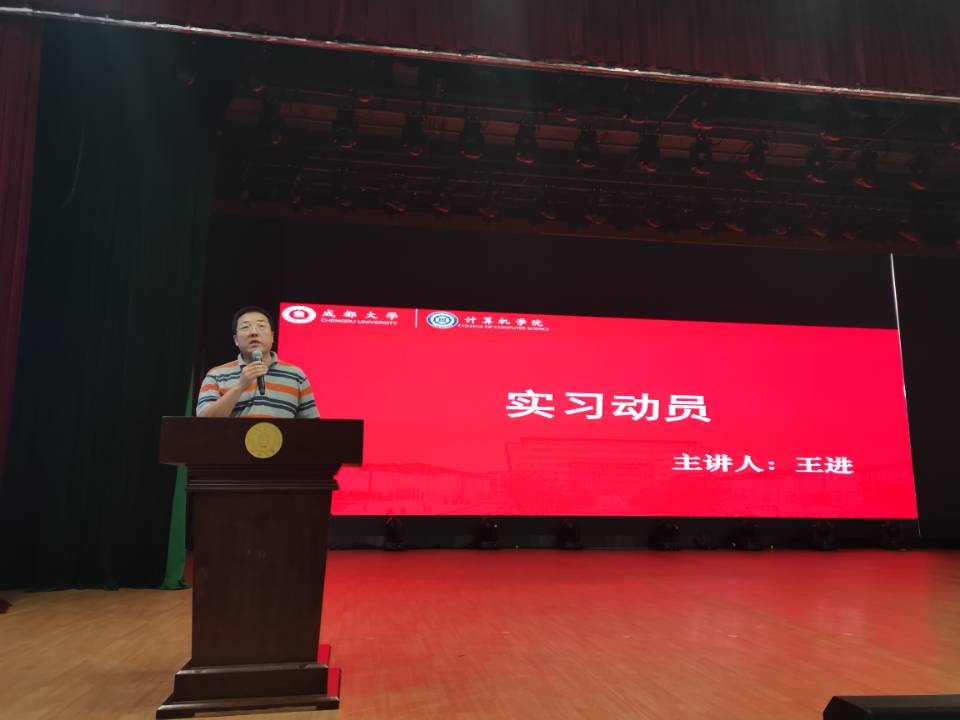 2021级本科生实习动员会于学生活动中心演播厅召开。会上,学院分管研究生工作副院长王进就学院研究生招生进行宣讲,2021级本科五个专业四百余名同学到场聆听。