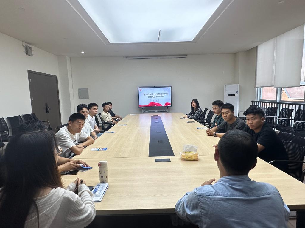 在10106会议室举办了一场特别的座谈会,面向在校的退役大学生进行研究生招生宣讲。此次会议由学院党委副书记孟源主持,研究生管理办公室负责人饶涛、辅导员黎佳雯以及多位退役大学生共同参加。