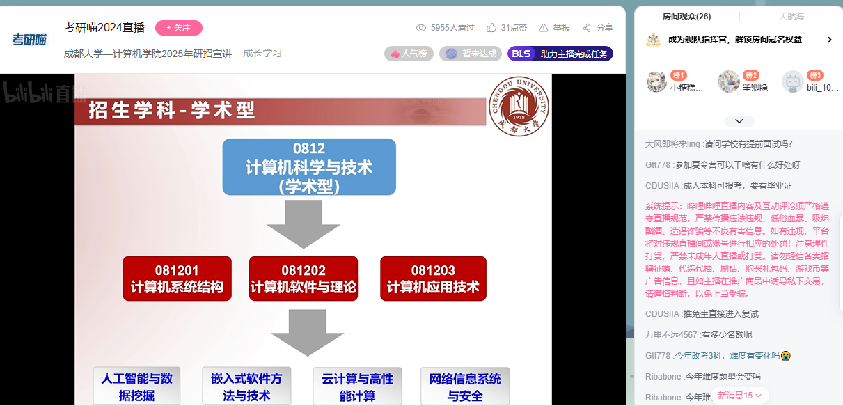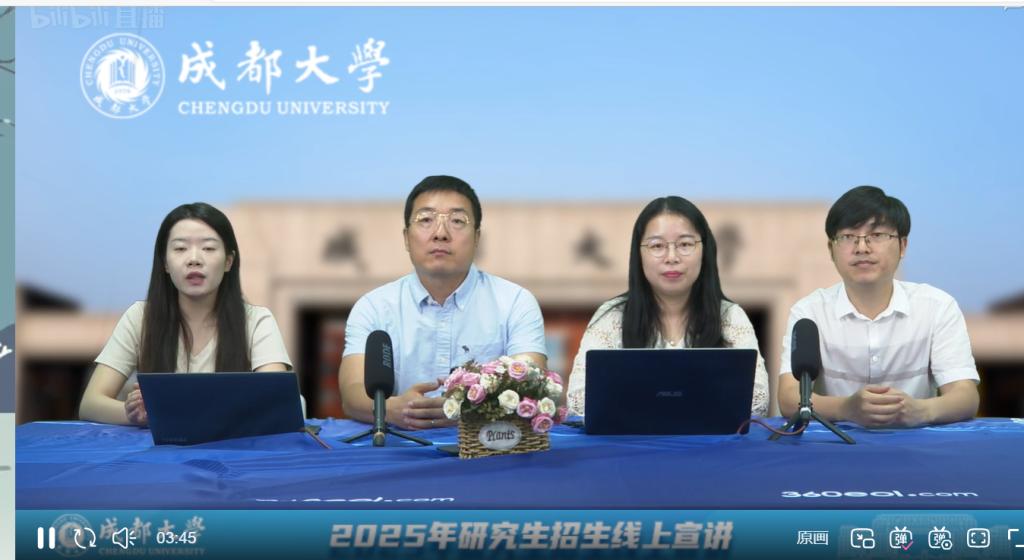 于哔哩哔哩网站开展2025年研究生招生线上宣讲直播活动。学院分管研究生工作副院长王进、硕士生导师吕晶晶、余小东参加。