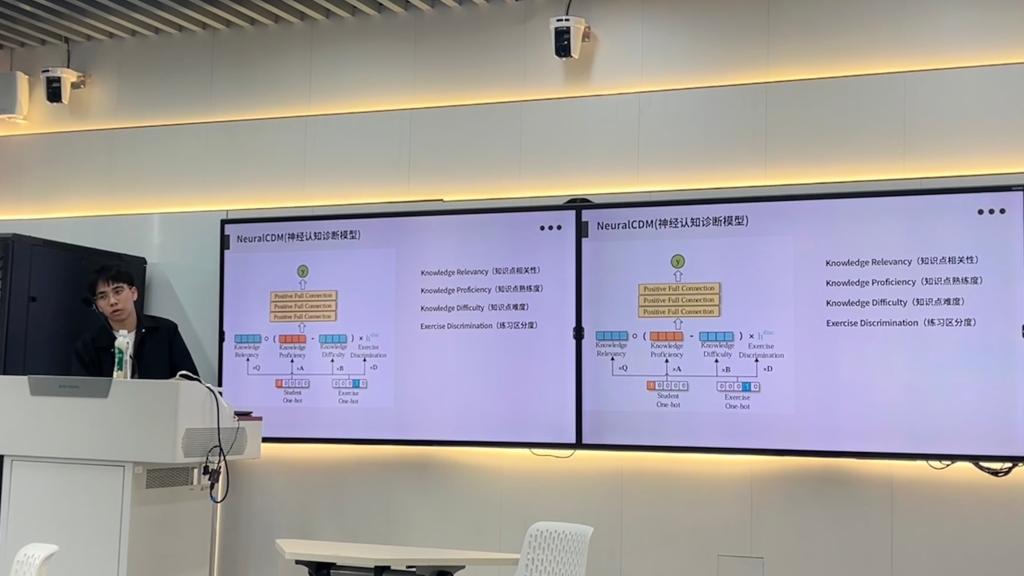 同时还介绍了智慧教育系统中的神经网络认知诊断技术。该技术框架解决了如何准确评估学生在特定知识概念上的熟练程度问题,通过神经网络模型,能够更准确地分析学生与练习之间的复杂交互关系,为教育评估提供更科学的方法和工具。