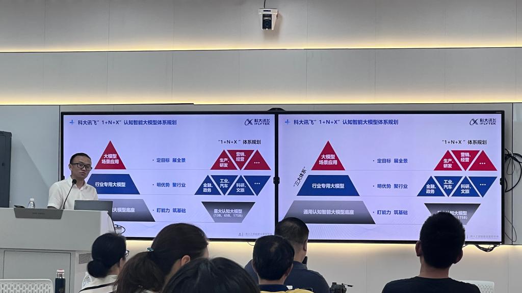 其次,讨论了认知大模型能力的转化。重点介绍了通用大模型如何服务于行业应用,从算力到场景的转化过程,以及讯飞为各行业构建最符合需求的大模型体系的工作。还提及了星火认知大模型如何满足行业的灵活应用需求,应用不同的大模型工具链助力行业提升AI应用效果,并介绍了星火智能体平台整体功能架构,以打造多样化智能体服务。