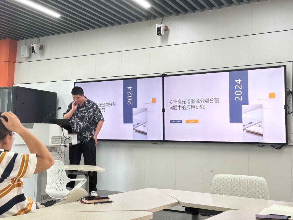 朱家彤同学分享了高光谱图像分类与分割的最新应用研究。他介绍了2015年Hu等人首次将一维卷积神经网络(1D-CNN)应用于高光谱图像分类,超越了传统机器学习方法。随后,Makantasis等人采用二维卷积神经网络(2D-CNN)进行分类,将高光谱数据的光谱维度视作二维卷积操作的特征图。Chen等人系统比较了1D-CNN、2D-CNN和三维卷积神经网络(3D-CNN)的特点,并提出了关于CNN结构设计的建议。此外,Zhong等人提出了空谱残差网络,提高了分类精度。朱家彤指出,传统CNN模型难以充分捕捉高光谱图像中的丰富信息,需设计更适合的网络结构引入空间信息和上下文建模,以提升分割效果。还介绍了图神经网络(GCN)在高光谱图像分类中的应用。2017年,Bruna等人将卷积操作引入图神经网络领域,Kipf等人提出了GCN,成为该领域的里程碑。之后,Velickovic等人将注意力机制引入,提出了图注意力网络(GAT)。2022年,Zhang将超像素分割技术与图注意力网络结合,应用于高光谱遥感图像分类,取得了显著提升。