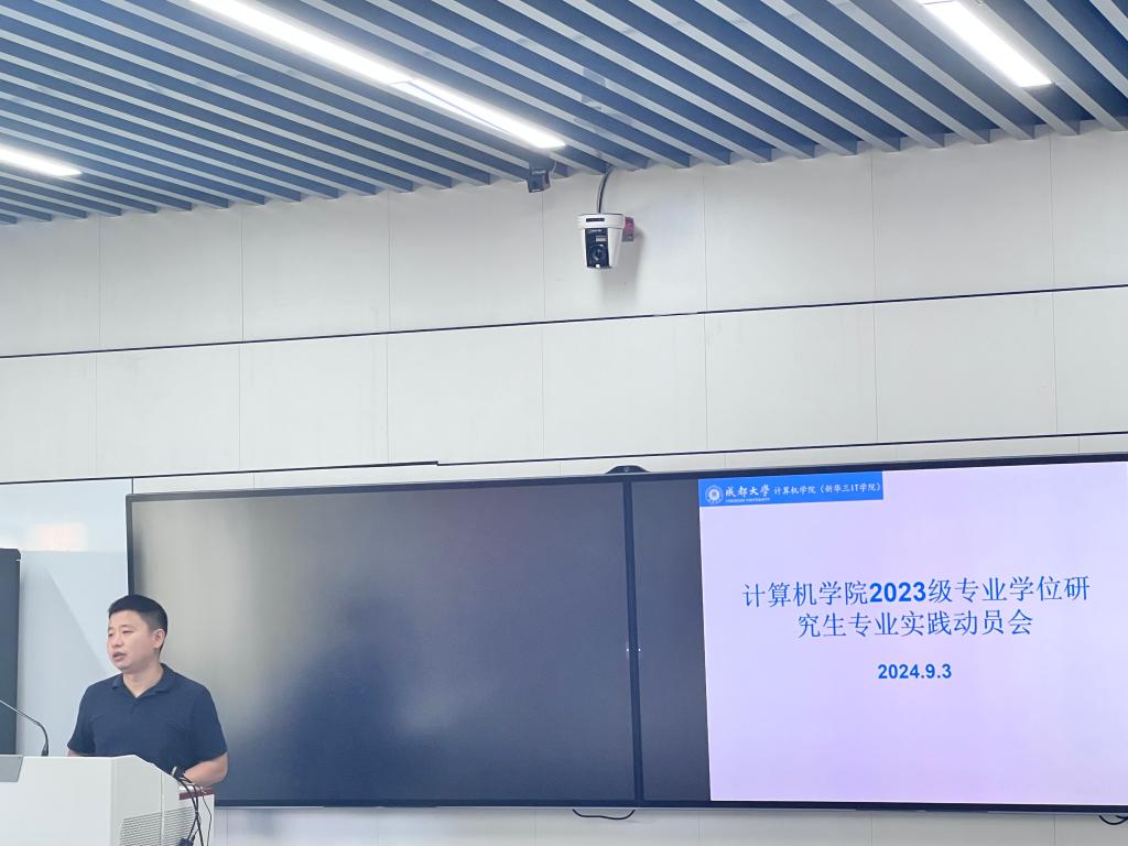 召开2023级专业学位研究生专业实践动员会。学院分管研究生工作副院长王进、学工办主任龚硕、辅导员饶涛与全体2023级专业学位研究生同学参会。