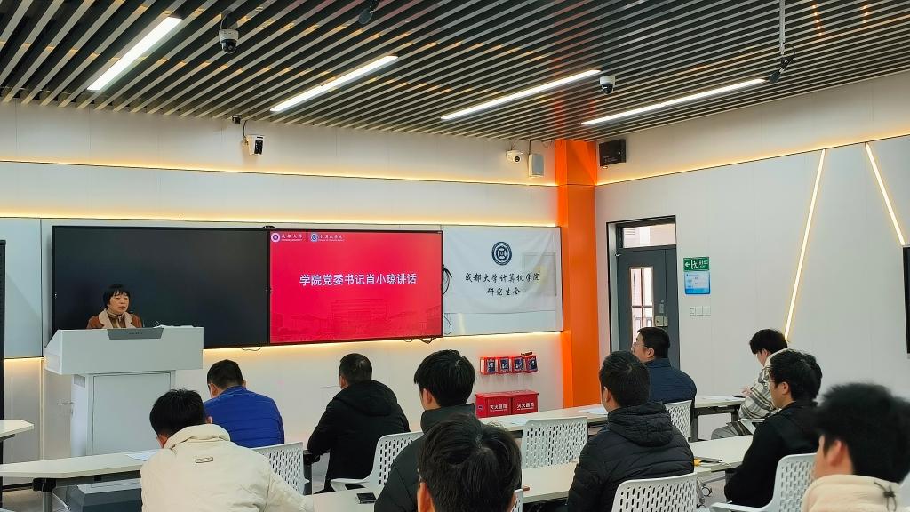 肖小琼讲话。肖小琼表示,研究生会作为一个学生组织,是同学们自我管理、自我服务、自我教育的重要平台,也是连接学生与学院的重要桥梁,是研究生育人工作的重要抓手。在未来的工作中,研究生会要紧紧围绕学院的中心工作和重点工作,积极开展各项工作。肖小琼对研究生会提出三点要求:一是加强组织建设;二是发挥桥梁作用;是加强队伍建设。并希望研究生坚定理想信念,在干事中成长成才,在学习生活工作中争当模范。