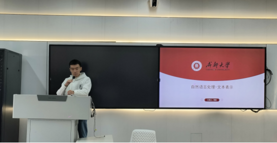 贺健同学以“自然语言中的文本表示”为题,分享了他在自然语言处理领域的最新学习成果。