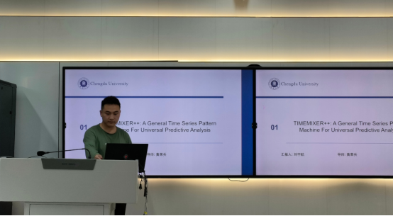 刘宇航同学则向大家介绍了“TIMEMIXER++: A General Time Series Pattern Machine For Universal Predictive Analysis”。该论文针对现有时间序列模型在捕捉通用模式方面的不足,提出了一种全新的时间序列模式机(TSPM)架构,特别是其TIMEMIXER++模型,在多项测试中展现出卓越的性能表现。其采用仅编码器架构,创新性地整合了输入投影、MixerBlock堆叠和输出投影三大核心组件。通过运用多分辨率时间成像、时间图像分解、多尺度混合和多分辨率混合等前沿技术,TIMEMIXER++成功解决了多尺度时间序列数据的分析难题,并展现出强大的泛化能力和预测精度。