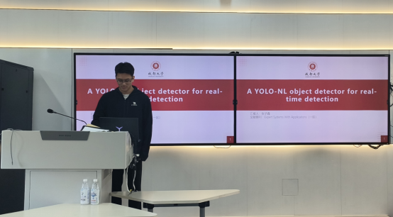 张子鑫同学介绍了论文“A YOLO-NL object detector for real-time detection”,文中提出了一种创新的目标检测器 YOLO-NL(You Only Look Once and None Left)。该模型引入全新的全局动态标签分配策略,平衡高精度检测与精确定位。针对复杂场景中多尺度目标检测,采用 “最短 - 最长梯度策略” 和自注意力机制升级 CSPNet 与 PANet。并且为满足快速推理需求,提出基于重参数化方法的 Rep-CSPNet 网络,将残差卷积转换为 Ghost 线性运算,通过串行 SSPP 结构加速特征提取。YOLO-NL 在 COCO 测试集及口罩检测任务中表现出色,以 52.9% 的 mAP 超越基线模型 YOLOX,且在自建 FMD 数据集及大型开源数据集上达到 98.8% 检测准确率,实时速度达 130 FPS,性能领先于现有先进方法。