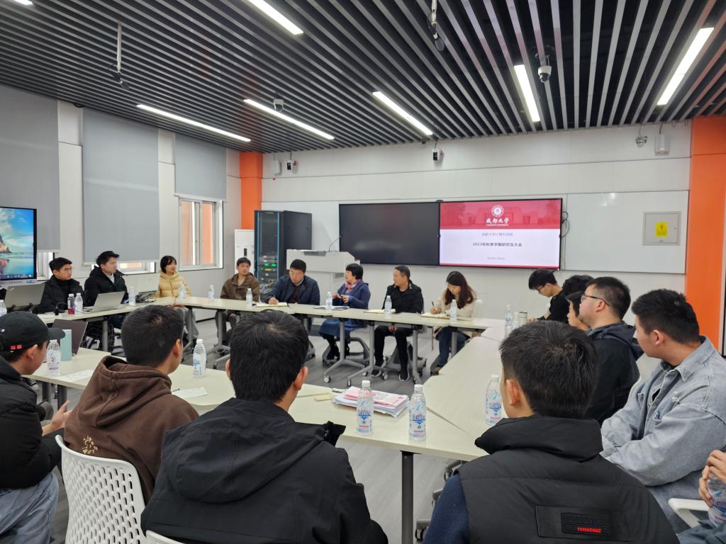 研一新生踏实奋进、积极向上的学习态度;其次建议同学们要将科研方向和未来职业规划和就业方向进行深度融合,达到“学以致用”的效果;最后向同学们强调了学院对于研究生的关心和关怀,欢迎学生随时就遇到的问题进行反馈,学院接下来将对同学们的建议意见分类整理、积极协调解决,切实提升同学们的满意度和获得感,全面提升教育服务管理水平。