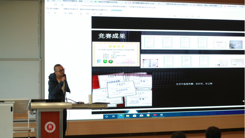 在讲座的重要环节,施达老师为学生们详细宣讲了全国大学生数学建模竞赛。他系统介绍了这项国家级A类赛事的基本情况、参赛要求和重要意义,强调了数学建模能力在计算机领域的重要价值。施老师还分享了往年获奖团队的宝贵经验,鼓励同学们积极组队参赛,通过实践提升自己的创新能力和解决问题的能力。
