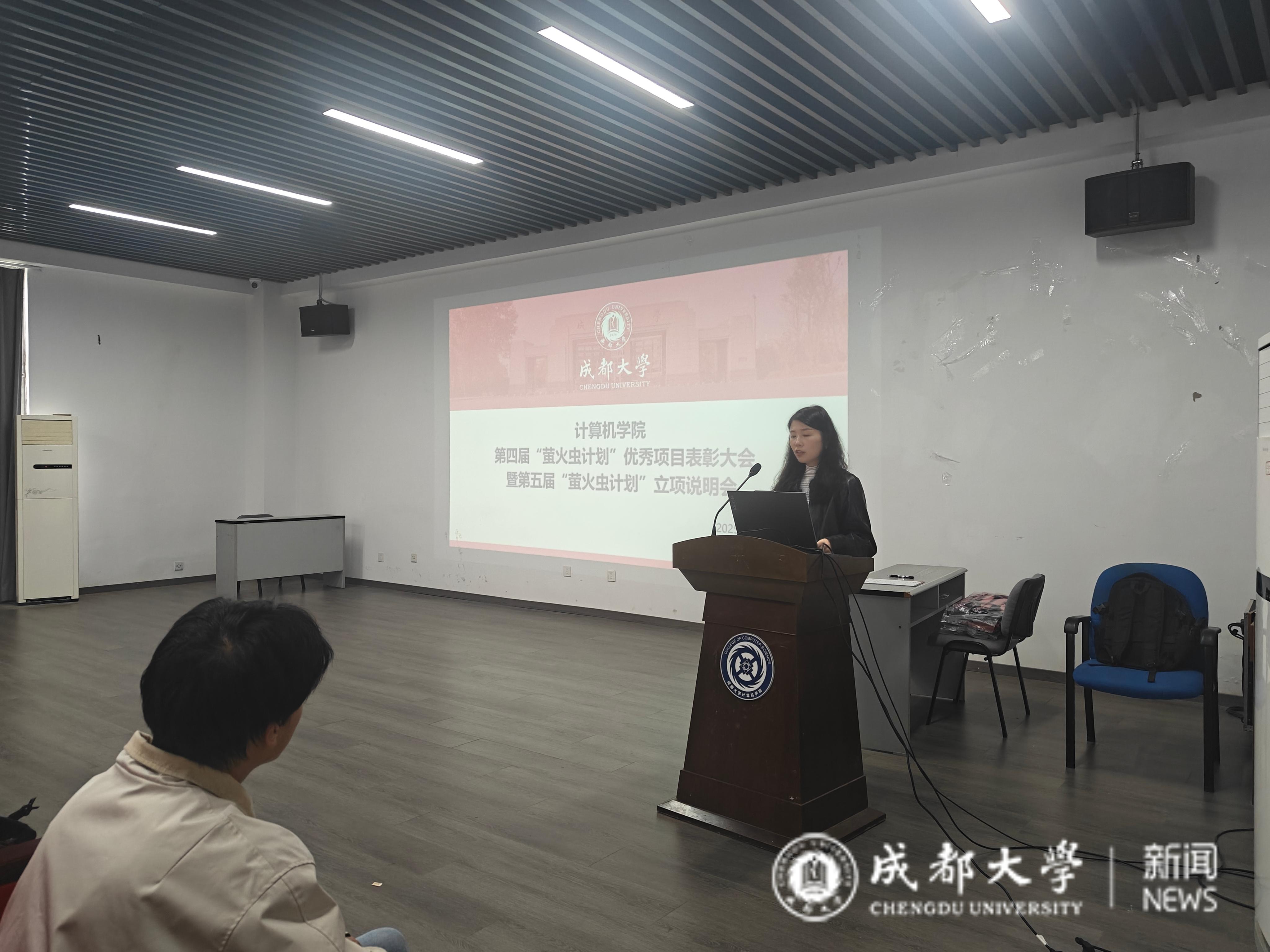 会上,龚硕首先对第四届“萤火虫计划”所取得的丰硕成果给予了高度评价,并向荣获“优秀项目”称号的10支团队表示热烈祝贺,她在讲话中指出,“萤火虫计划”作为学院人才培养体系的重要组成部分,始终坚持以项目为牵引,以专业为根基,推动学生在实践中深化理论认知,在创新中锤炼综合能力。面对新一届立项的63支团队,他勉励同学们要勇于突破思维边界,敢于探索未知领域,在实干中成就卓越。之后,龚硕系统介绍了“萤火虫计划”的项目实施流程与管理规范,并回顾了第四届计划的整体执行情况,且指出本届多个项目展现出鲜明的创新特色与扎实的应用价值。在颁奖环节,龚硕老师为第四届“萤火虫计划”优秀团队颁发了优秀结题证书。