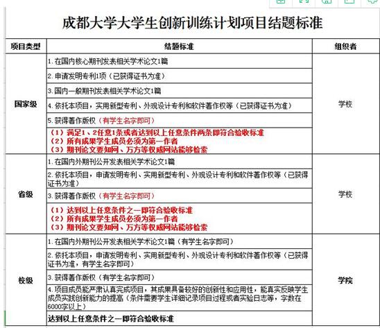 1.校级、省级、国家级大学生创新训练计划项目按下图结题标准进行结题。