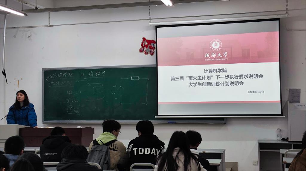 组织召开第三届“萤火虫计划”执行情况说明会暨2024年大学生创新训练计划动员会,会议在10教203教室举办,第三届萤火虫计划负责人参与会议,学院学工办老师龚硕主持会议。