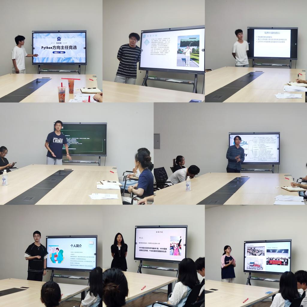 随后,七大方向的主任候选人依次上台进行竞选演讲。他们充分展示了自身的优势、卓越的能力和独特的特点。每位候选人的演讲内容丰富而有条理,逻辑严谨,既展现了个人的专业素养和对科创室的深厚感情,也为科创室未来的发展提出了许多切实可行的建议。这些演讲不仅彰显了候选人的实力与才华,还体现了他们对科创室未来发展的深刻思考与责任担当。