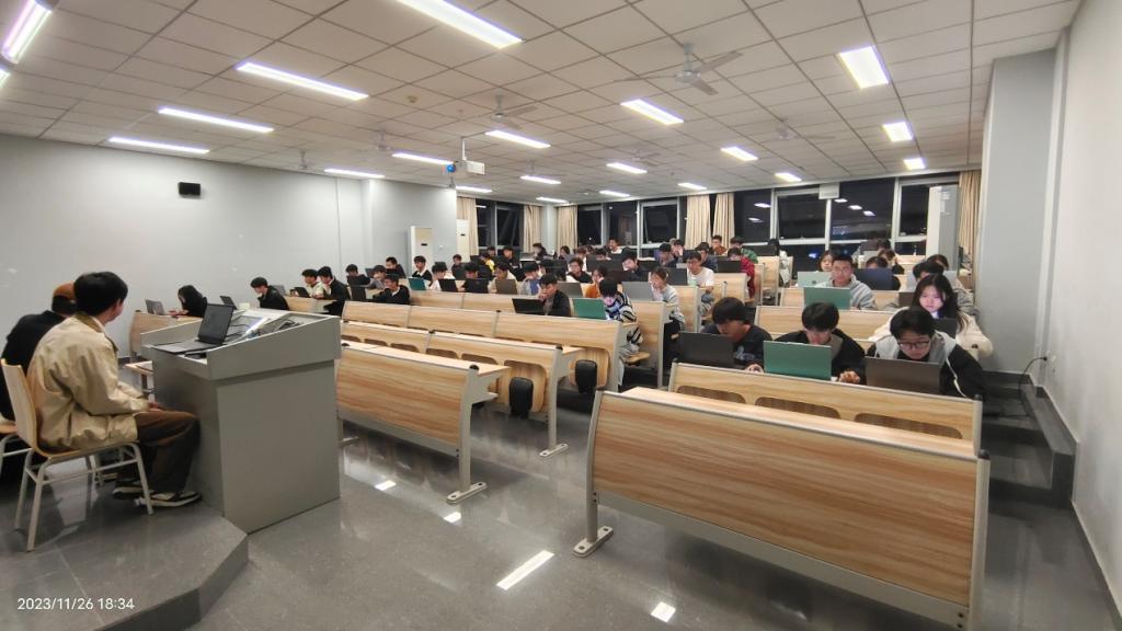 (本网消息 文/方子涵 图/吴俊煯)11月26日晚,学院利用第二课堂举行了本学期第二次C语言排位赛。2023级全体新生分专业在学校综合楼五个教室进行了考试。
