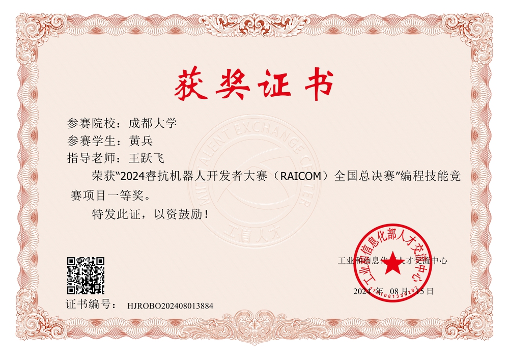(图/文 张修军)2024年8月4日,由工业和信息化部人才交流中心、RoboCom国际公开赛组委会主办的2024年睿抗机器人开发者大赛CAIP编程设计赛道全国总决赛在网上线上举办,经过2个小时的激烈竞争,我校晋级全国决赛的37人最终获得全国一等奖5项(获奖学生姓名:翟鑫麟、卢智贤、何智恒、黄兵、冉天祺)、全国二等奖13项(获奖学生姓名:张中行、李豪、李纪松、刘梓涵、吴哲希、马志圆、万名森、唐国超、饶玉帅、巢国俊、田峰泽、张信富、李高飞),全国三等奖19项(获奖学生姓名:王述珍、完颜成煜、颜久和、陈梓秋、张春霞、李霖、甘在呈、周书磊、王若萱、肖國行、张祥、段华彬、陈德健、许瑞烊、葛紫豪、骆智敏、赵韬皓、王宇琛、王姿涵),获奖成绩较去年有了显著的提升。