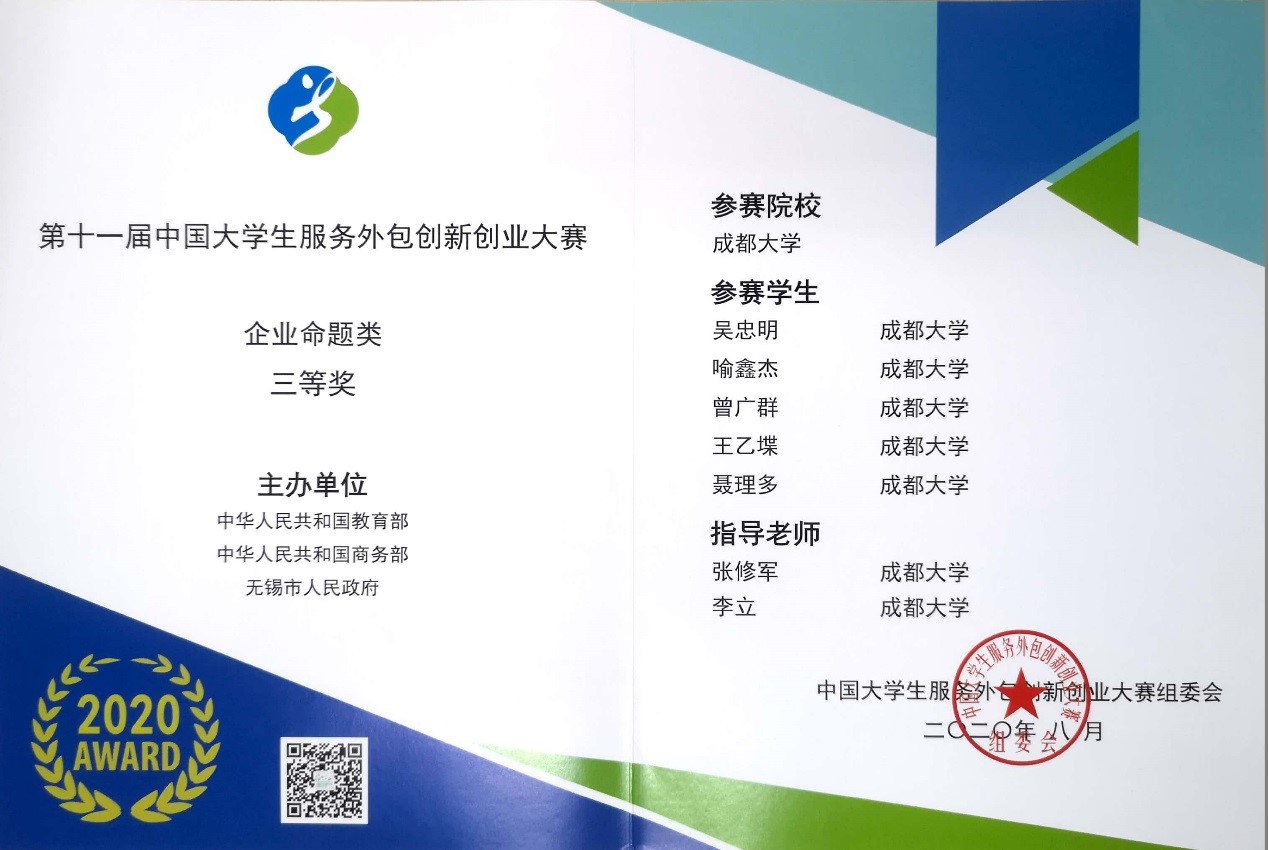 学校组织了多支队伍报名参加本项赛事,并于2019年12月底完成报名选题。团队克服了疫情的巨大挑战,开发团队历经需求分析,概要设计,详细设计,代码开发等软件开发环节,并进一步完善了软件作品的产品化细节。经历了西部赛区初赛,西部赛区决赛,全国总决赛的层层历练,让参赛团队成员经历了一次完整的软件开发过程,参赛团队成员在需求分析、架构设计、软件开发、测试部署、沟通交流及抗压能力都得到了极大提升。