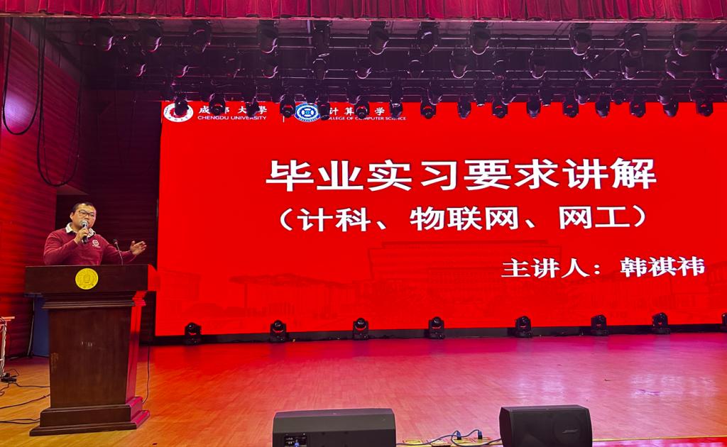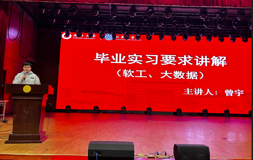 软件工程与大数据技术系主任曾宇和计算机工程与应用系主任韩祺祎分别讲解了各系部毕业实习的相关要求,对分散实习和集中实习的选择以及相关注意事项进行了详细介绍。