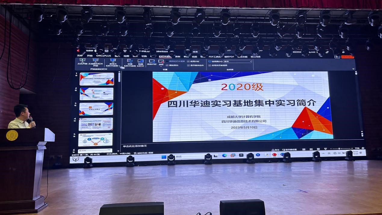 学院集中实习合作企业四川华迪信息技术公司和成都国信安信息产业基地有限公司分别进行了介绍。对公司情况、集中实习方向选择、集中实习内容及项目成果、实习基地环境等进行了详细讲解。