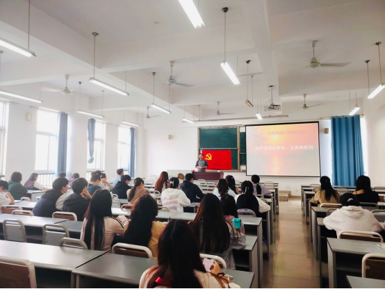 党课开始,杨龙老师围绕主题详细介绍了入党的各项时间节点、具体要求和注意事项,系统讲解了党员的义务和权利的内涵。杨龙老师希望同学们将会始终以一名党员的标准严格要求自己,带动身边的人积极前进。