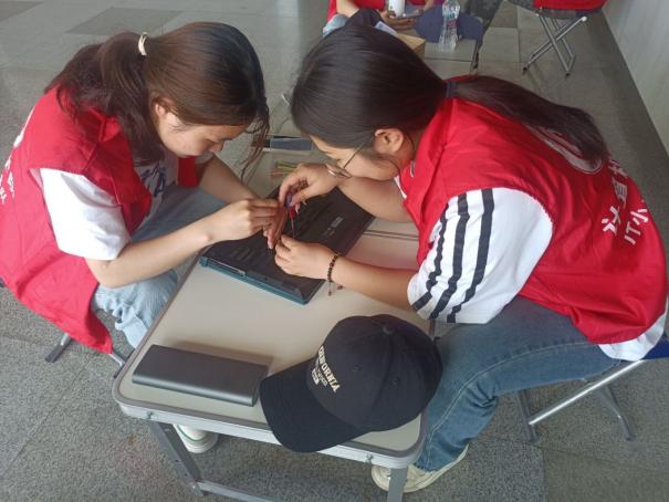 活动现场,IT 小火炬服务队的队员们以自己的专业技术为同学们提供了涵盖硬件维护与软件支持的全链条服务。从 C 盘空间告急的深度清理,到电脑内部积灰导致的散热低效、CPU 硅脂老化更换等硬件维护难题,队员们以扎实的技术功底逐一攻克。针对同学们在软件安装、系统设置等日常使用中的各类困惑,队员们也始终保持耐心,以通俗易懂的方式逐一解答。他们全程以热忱的服务态度与严谨的专业精神投入工作,用实际行动践行着党员的责任担当与奉献精神。