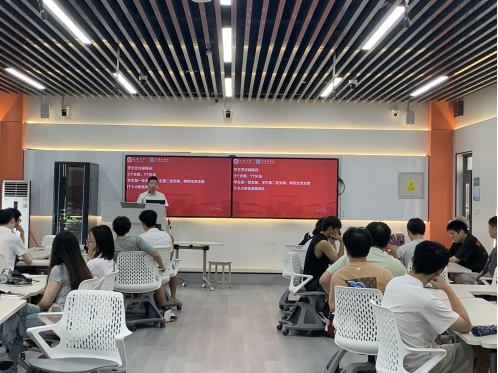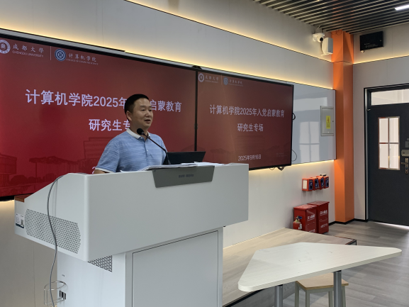 (图/梁玉 文/饶涛)9月16日下午,学生党支部于10305教室为2025级研究生开展入党启蒙教育。学院党委副书记孟源、学生第一党支部书记饶涛与2025级研究生与会。