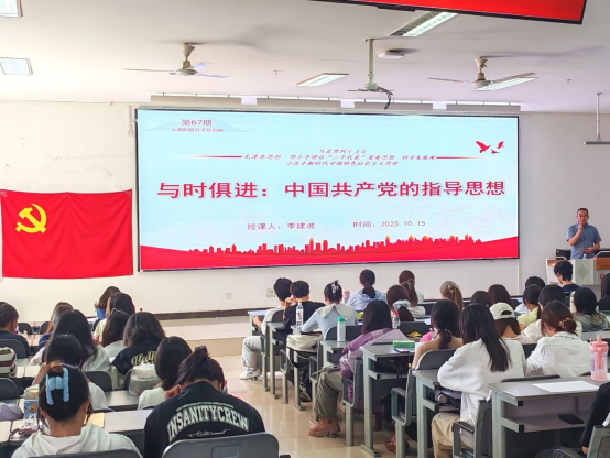 师范学院专职组织员李建波为全体拟积极分子授课,授课的主题为“与时俱进:中国共产党的指导思想”。李建波老师系统梳理了中国共产党指导思想的发展脉络,强调其“与时俱进”的核心特质。李老师的讲解还结合历史成就与当下实践。同时,李建波老师勉励参与者将个人发展与国家命运相连,在学习中树立远大理想,以科学理论指导行动,为实现中华民族伟大复兴贡献力量。
