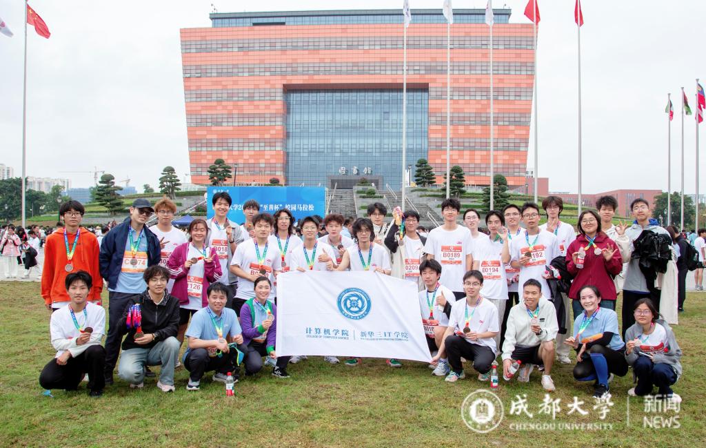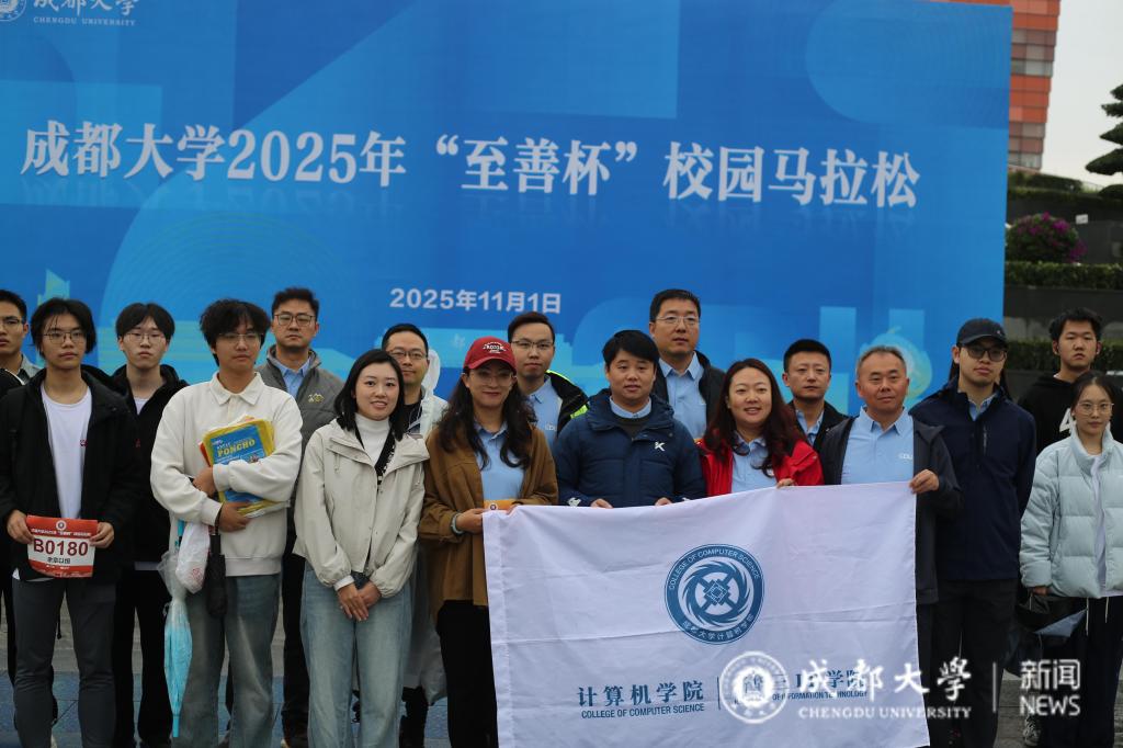 “至善杯”校园马拉松赛事在秋日晨光中拉开帷幕。学院组织了由13名教职工、40余名在校学生及多名返校校友组成的方阵,以奔跑的姿态诠释“代码与脚步齐飞,青春共热血一色”的学院精神,成为赛道上一道亮丽的风景线。