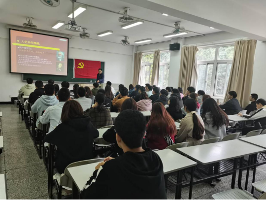在本次党课中,杨龙老师首先对中共党员发展条件历史溯源进行了介绍。在介绍中,杨龙老师强调:自十八大以来,我党始终把政治标准放在首位。同时,在《中国共产党发展党员工作细则》中,也提出了发展党员工作新十六字方针。其后,杨龙老师又详细地讲解了如何正确理解成为中共党员的标准和条件。讲解中,杨龙老师也补充了关于其它社会阶层入党规定。在这一部分的讲解中,杨龙老师提出:党员承认党的党章,是全党在思想上、政治上、组织上和行动上保持高度一致的前提。