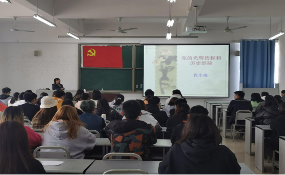 会议伊始,由学生第一支部支委李金凤同志进行点到,并组织了全体积极分子起立唱国际歌,之后由肖小琼书记正式开始本次党课,本次党课肖书记以中国共产党得辉煌历程和历史经验为主题展开讨论 。首先,肖小琼书记问了同志们一个问题,我们对党的历史了解多少?接着,肖书记讲到了这一路上的光辉历史与历史经验,并说到历史源于历程,然后开始为同志们延伸党的相关历程细节与所收获的种种经验。
