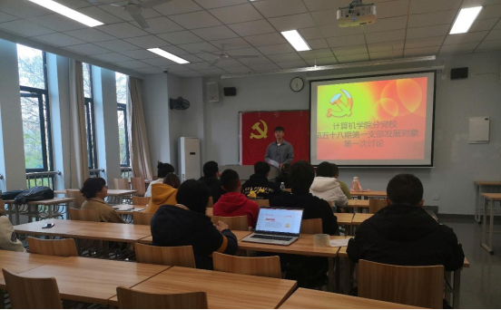 学生第一党支部第58期发展对象第一次讨论在综合楼A222举行。会议伊始,王兰西同志进行点到,随后全体人员起立共唱国际歌,接着王兰西同志宣布了讨论会的规则并宣布讨论正式开始。