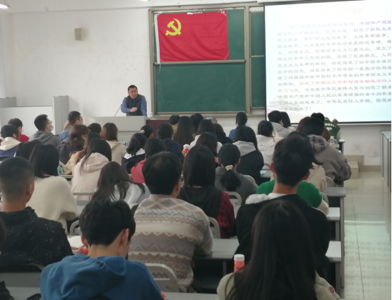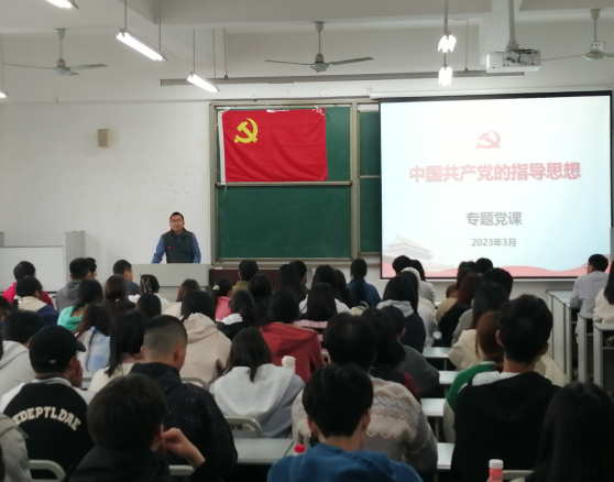 10201教室座无虚席,学校党委宣传部杨启金老师为全体拟入党积极分子讲《党的指导思想》。杨启金老师讲述了中国共产党的光辉历程和伟大成就,对党的指导思想进行了具体解释,并阐述了新时代新征程中国共产党的使命任务。