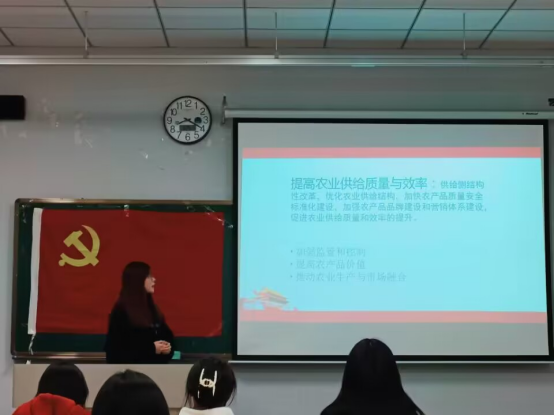 会议伊始,全体同学起立共唱国际歌,主持人宣布讨论规则。期间,同学们各抒己见,踊跃发言。其中,王锡同学提到在农业方面个人力量是微不足道的,随着科技发展,农业的发展趋势是有范围性,组织性的,国家的大部分粮食产生是依靠科技化生产,而不是依靠个人的耕地。张树杰同学表示,加快农业现代化建设能够为现代化强国建设奠定基础,并从自身出发结合实际表达了对该观点的理解和看法。在讨论过程中,同学们为如何建设农业强国出谋划策,提出了如:制定相应的政策鼓励农民用科技生产粮食、提升农村的吸引力以此来吸引高端的技术人才,健全农村产业链等建议。