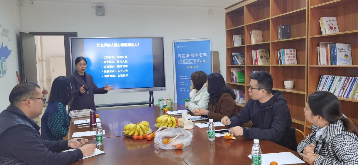 本网消息(图/游佳忆 文/游佳忆)3月28日下午,由计算机学院党委、工会共同举办的流星荟系列活动之教职工心理健康沙龙在职工小家10104会议室举行。本场沙龙以“关爱自我 呵护心灵”为主题,特邀我校心理健康教育中心邵昌玉副教授作主讲嘉宾。